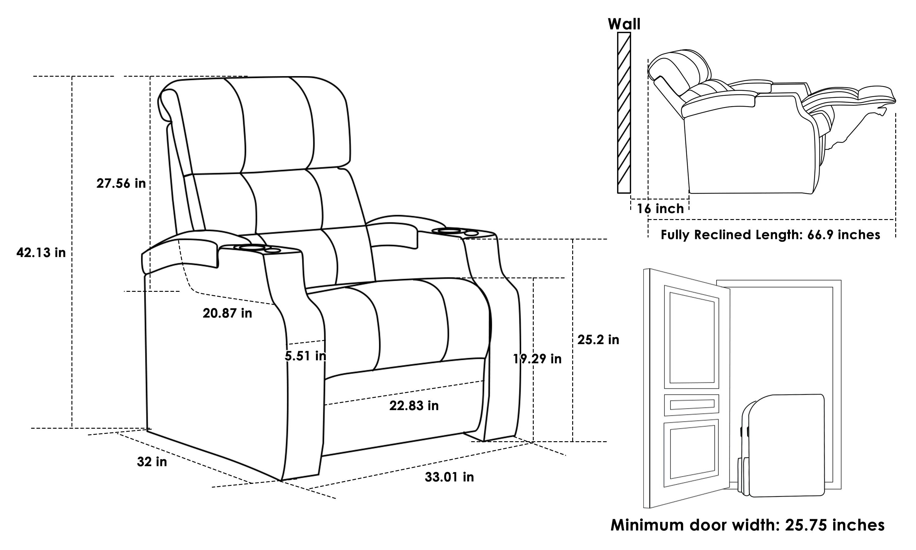 Edgex Series theater recliner with 360-degree swivel tray table