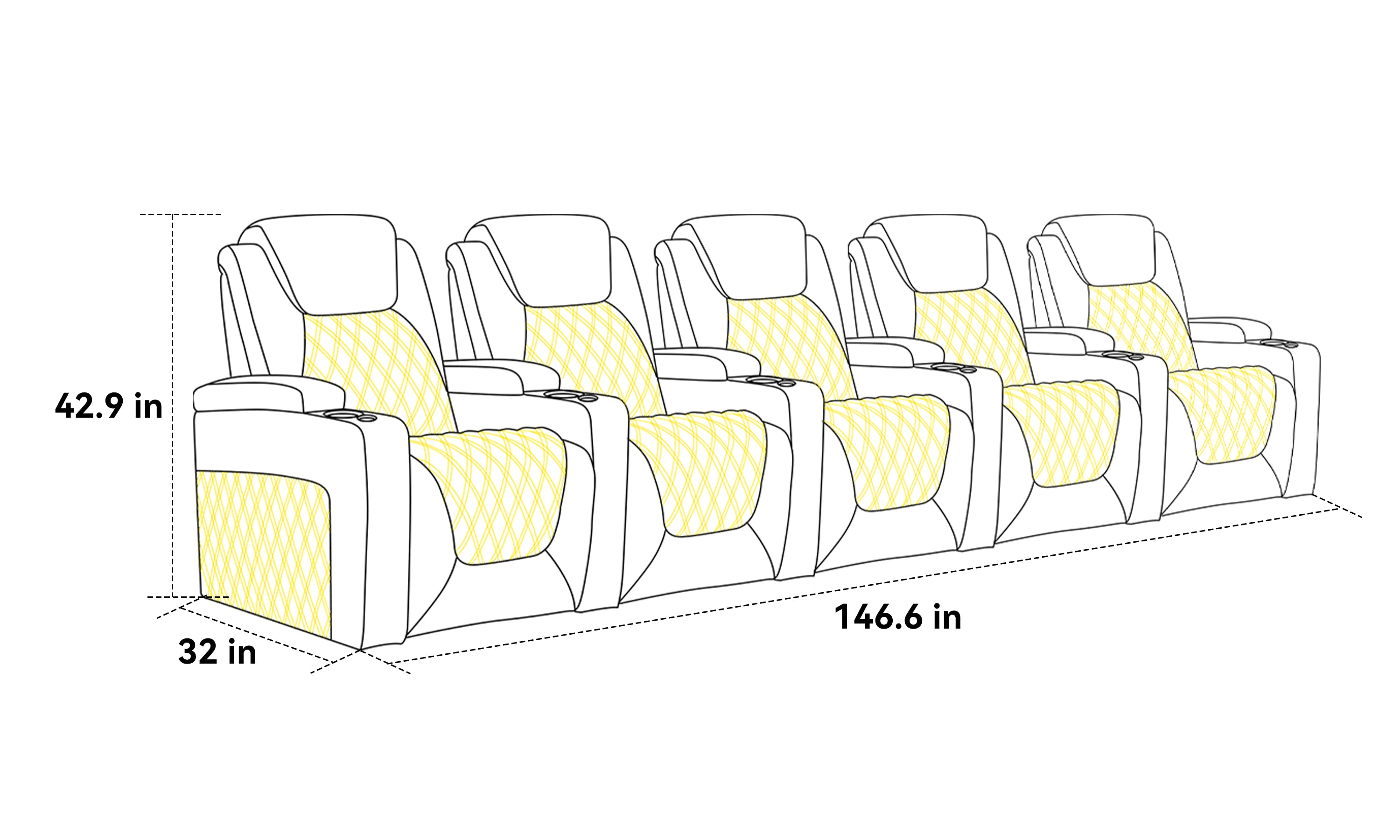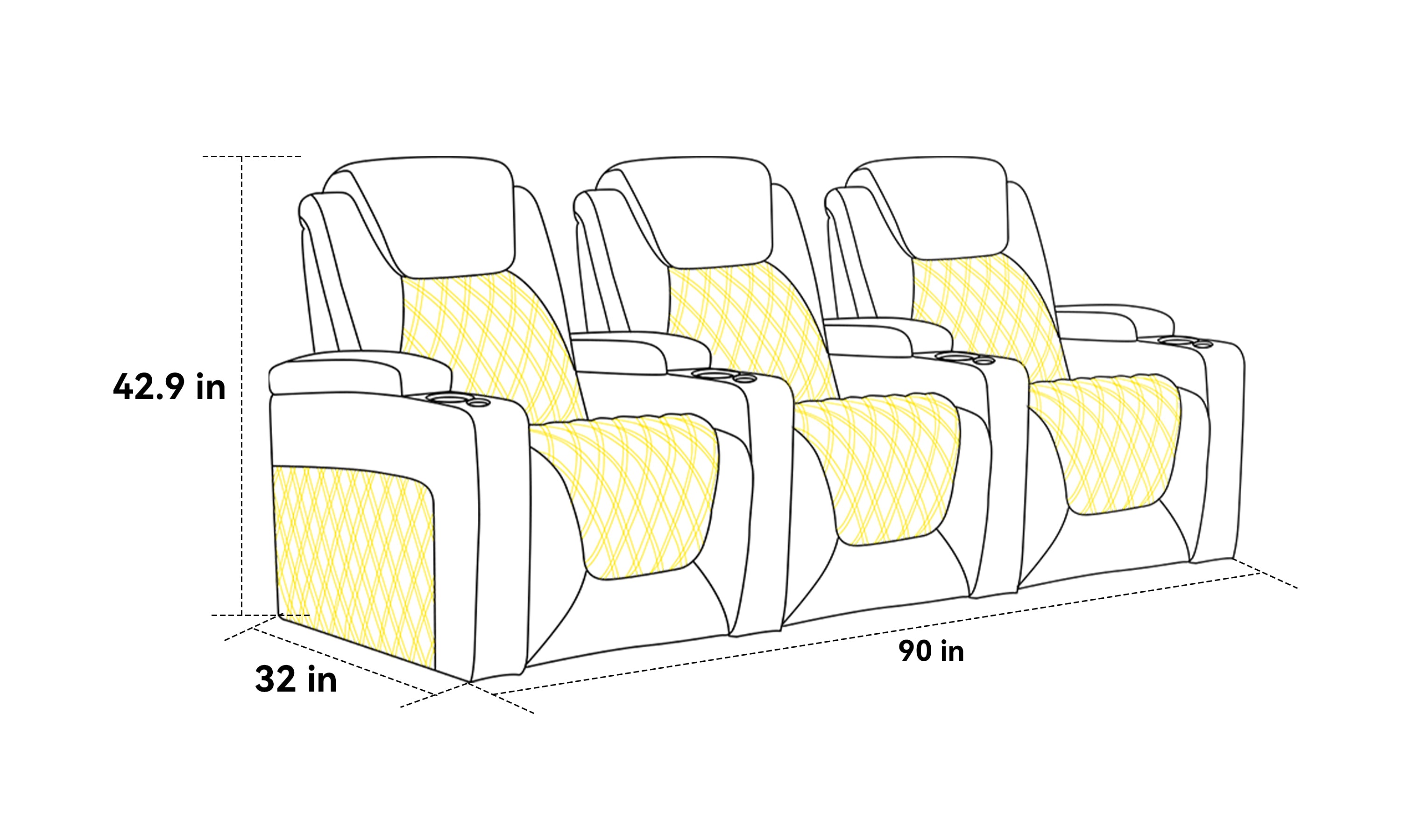 Structured cushioning delivers a firm, supportive feel designed to hold its shape over time, providing stable comfort for long movies while maintaining Prym’s refined theater presence.